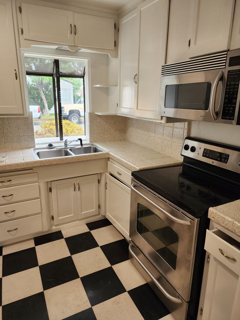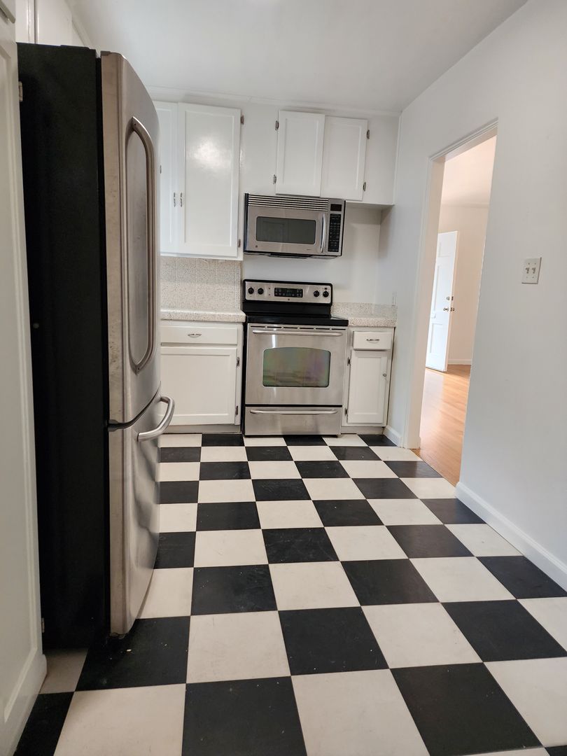 The kitchen is equipped with stainless steel appliances, large fridge with bottom freezer drawer, electric stove/oven and built in microwave. Plenty of cabinets for all your storage needs and a garden window for your indoor plants.