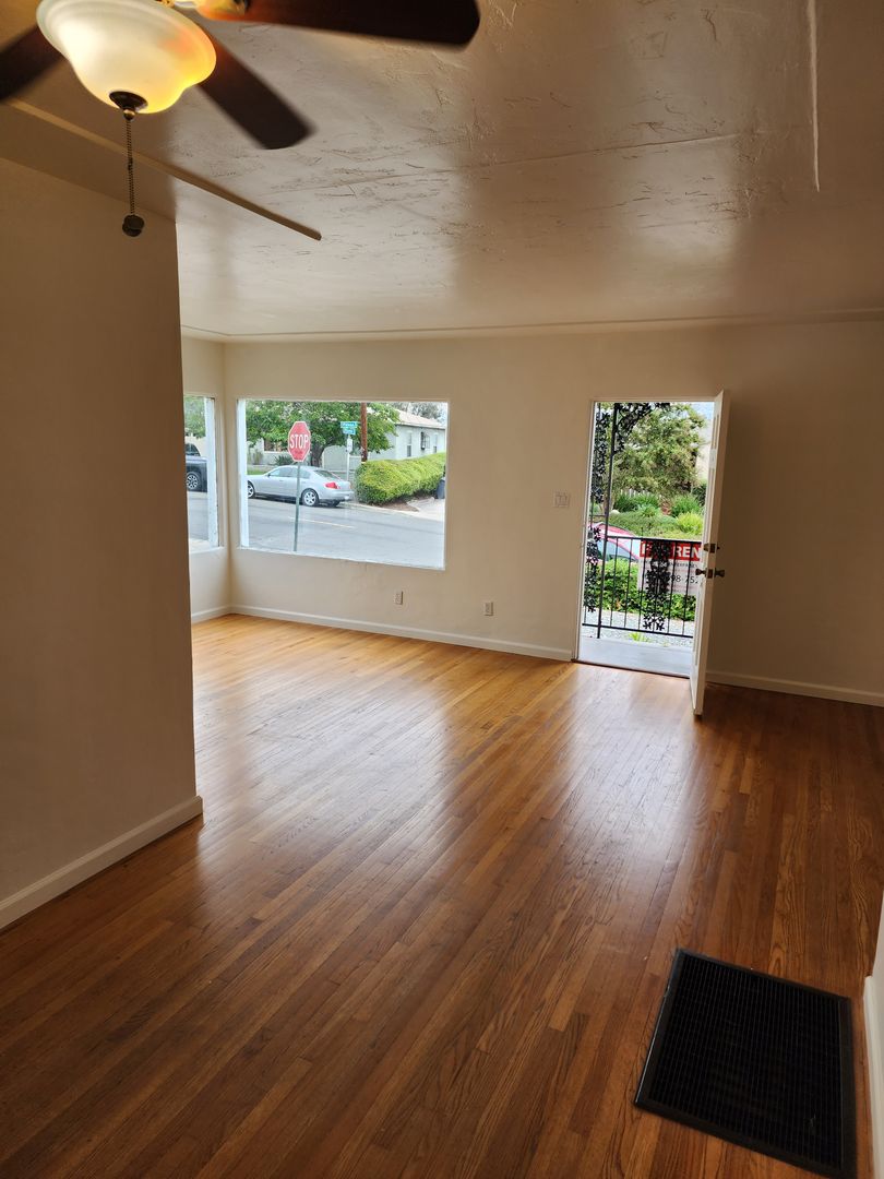 This La Mesa duplex features original hardwood floors throughout with new LVT in kitchen and separate utility room. Large windows bring in lots of natural light. Each room has a ceiling fan for added comfort and the unit has two mini split HVAC units for heating and cooling.