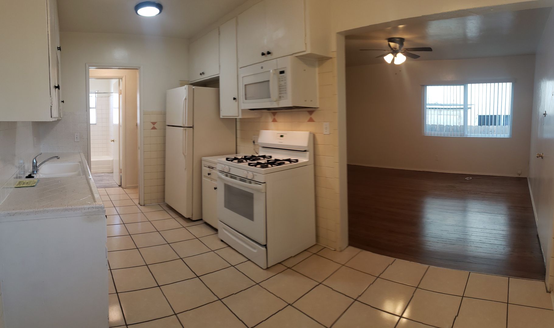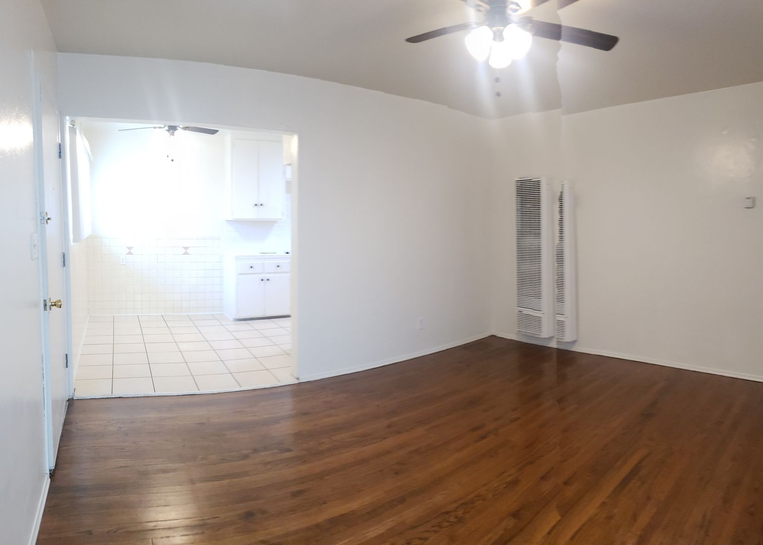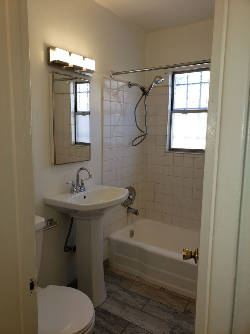 Our upcoming unit features original hardwood floors, dual pane windows, and ceiling fans. The retro-style kitchen comes equipped with a gas stove, fridge and built-in microwave. There is a separate dining area for your eat-in enjoyment. The unit has a newer wall heater with digital thermostat. The unit is expected to be ready for move-in by early January.