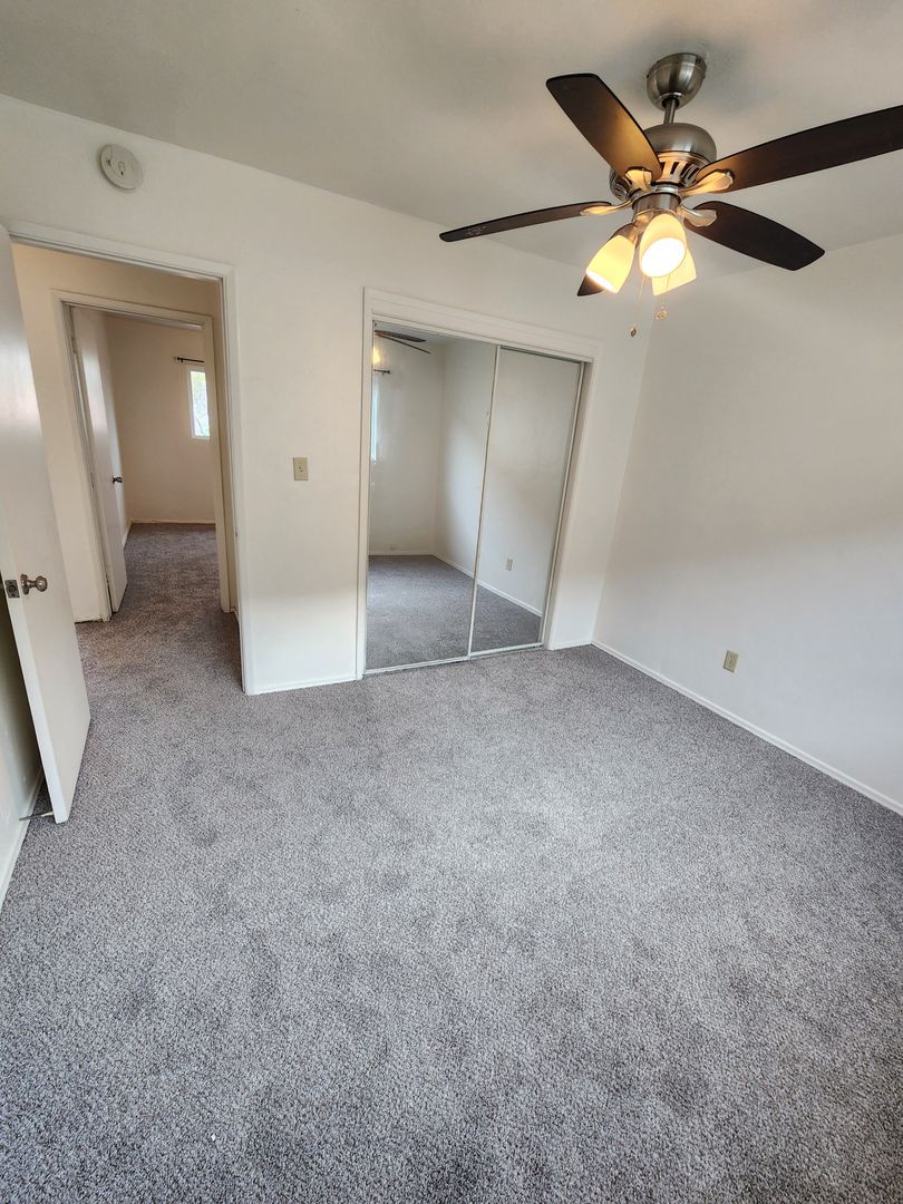Our available unit is located on the second floor of the front building. Its a bright end unit with large dual paned windows that filter in plenty of natural light and allow for energy efficiency in all weather. The unit features carpeted bedrooms, large bedroom closets with an additional linen and coat closet in the hall. The kitchen is equipped with gas stove, fridge and has space for small table & chairs for dine-in convenience. Each room has a ceiling fan for added comfort.