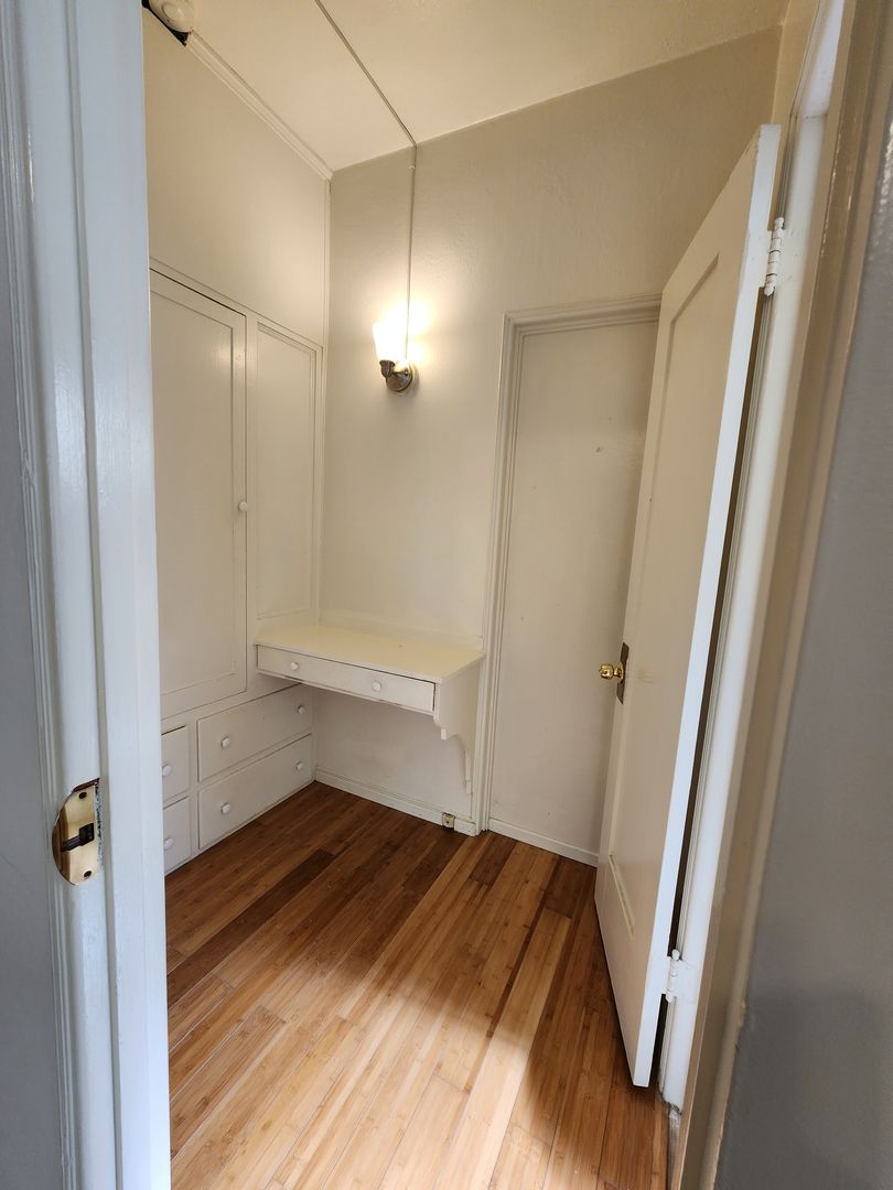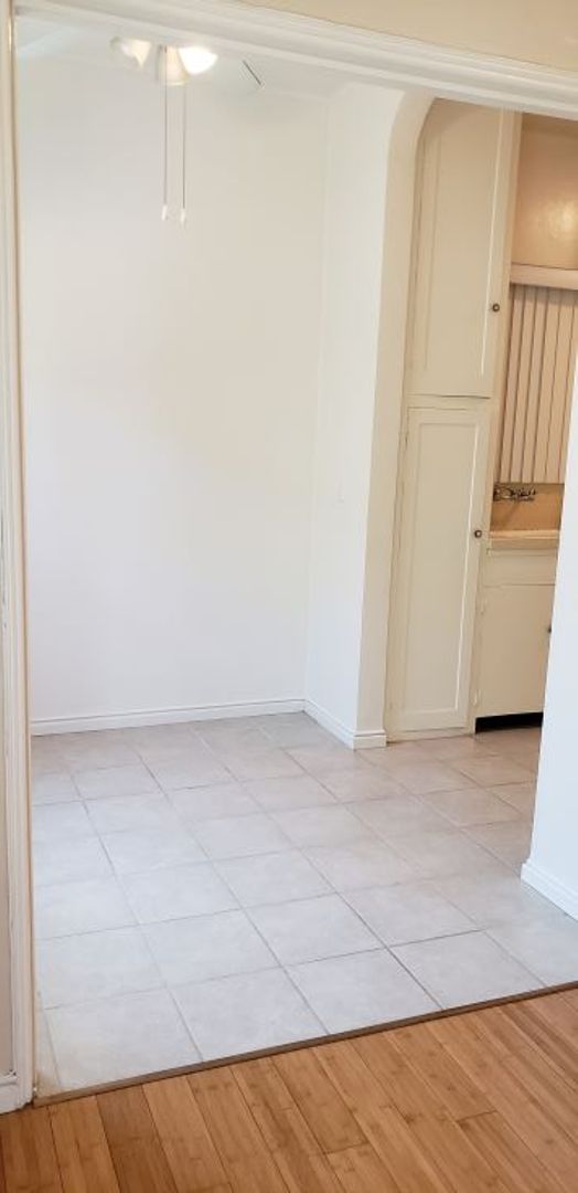 Our upcoming studio will available by end of December. The unit features bamboo flooring in main living space with tile in kitchen and bathroom and a vintage built-in vanity outside the bathroom. It has vaulted ceilings, ceiling fans and dual paned windows to keep you comfortable in any weather. There is a separate dining area for your eat in convenience.