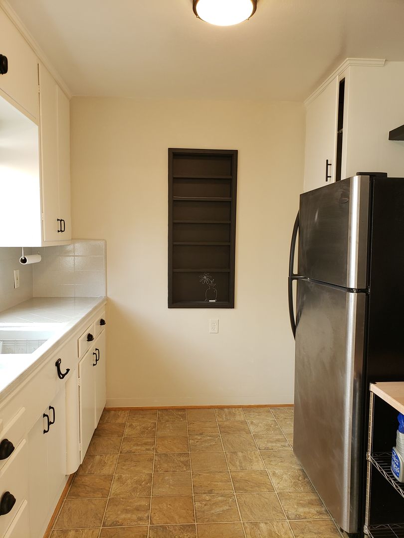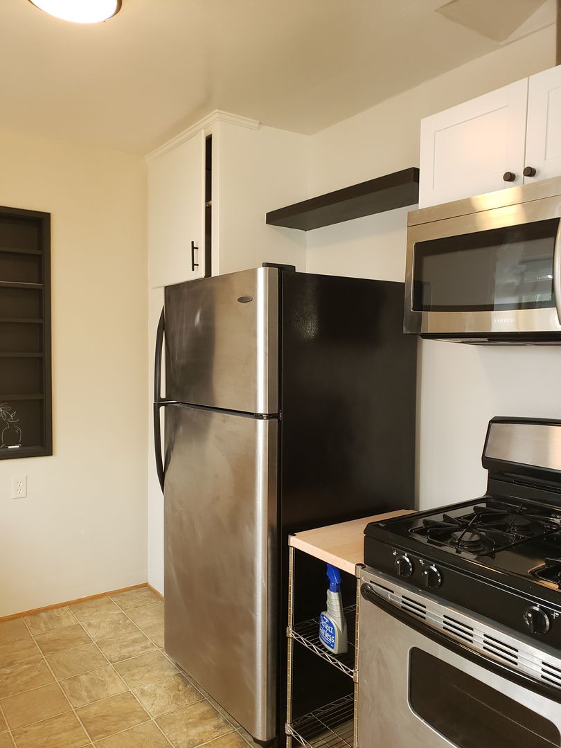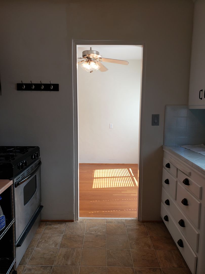 Our upcoming 1bdr unit features original hardwood floors, a spacious living room and separate dining room with wall AC. The large kitchen has plenty of cabinet space with vintage tiled countertops and is equipped with stainless steel gas stove, fridge and built-in microwave.