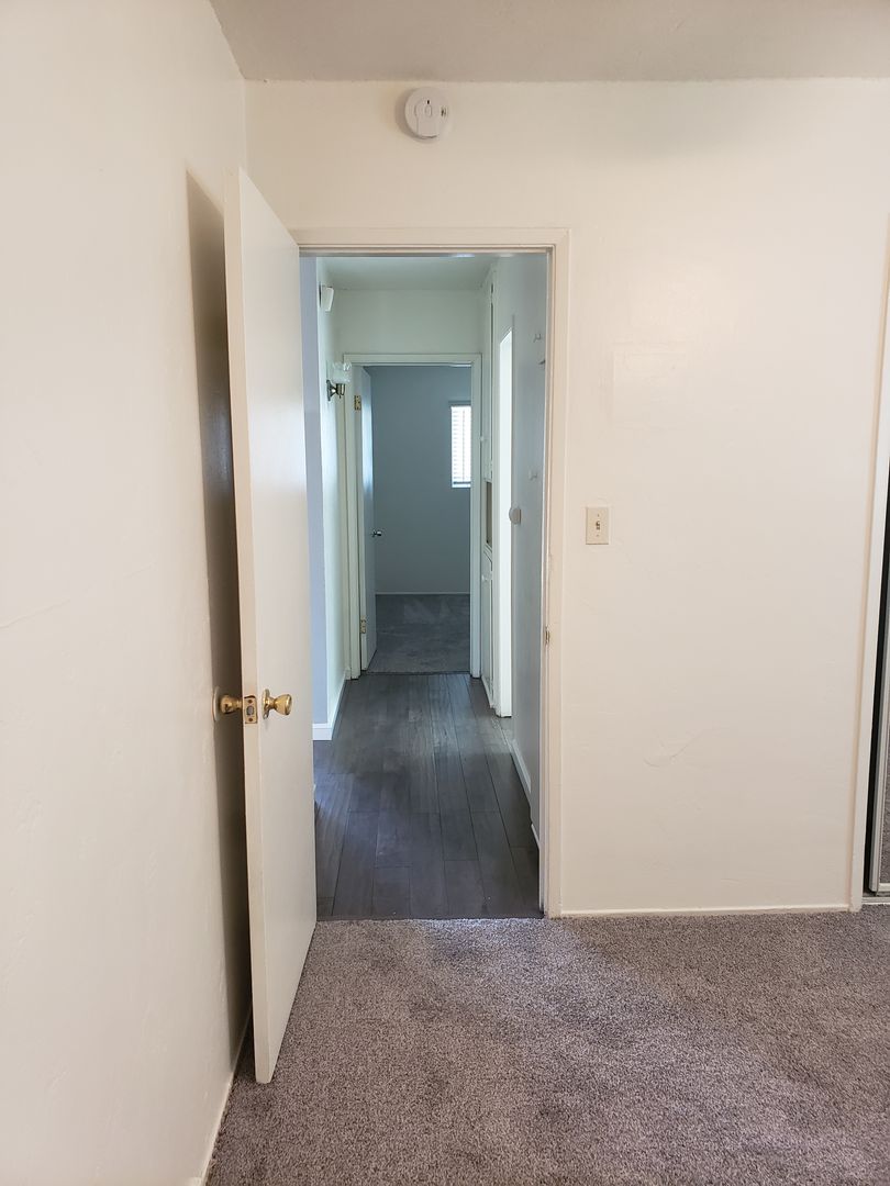 Our available unit is one of our most spacious 2bdr units. It is located on the 2nd level of our small 16-unit apartment community, the 2 buildings divided by a tree lined courtyard. This unit features a huge living room that leads into the kitchen. The kitchen is equipped with gas stove and fridge and lots of cabinet space. Each bedroom features large closets with mirrored closet doors and a ceiling fan. There is a private balcony (off the kitchen) that will fit a small table and chairs, so you can have some outdoor enjoyment. It also comes with assigned parking and onsite laundry.